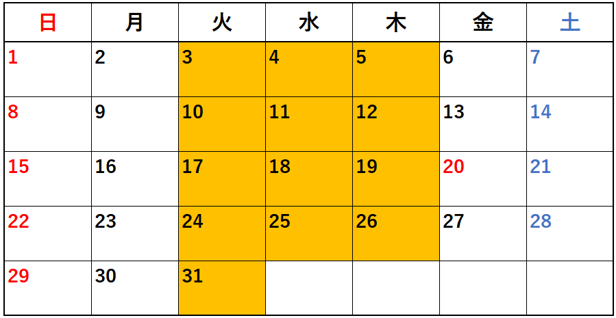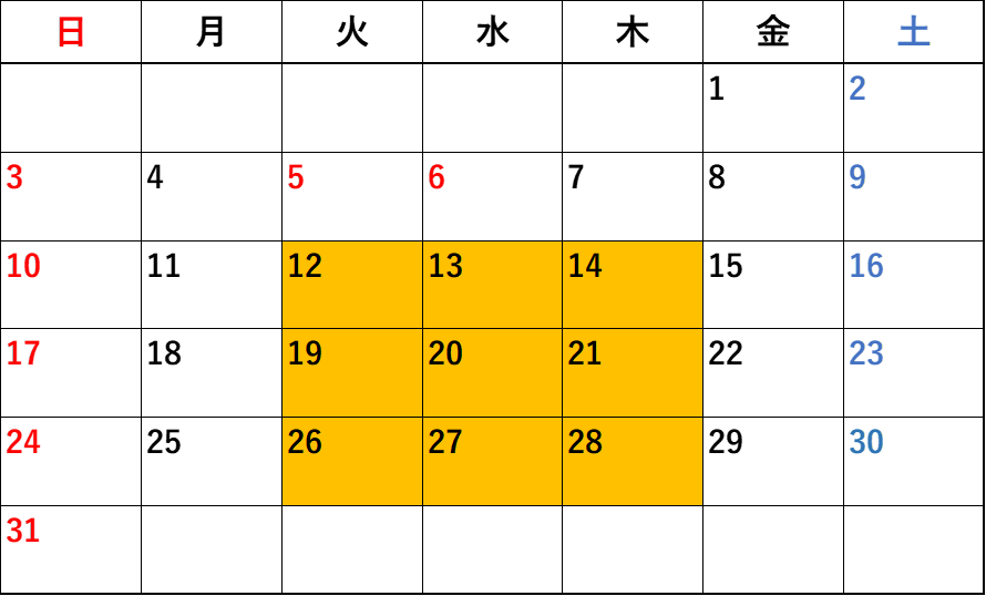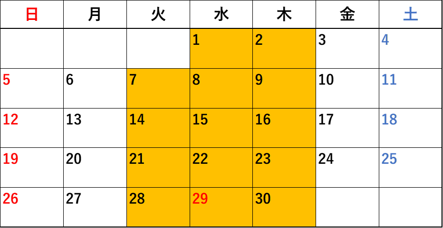 オレンジ色の日が開校日です。